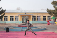爱心公益送书队的同学为孩子们准备了精彩的文体节目,学生代表曹美琪以诙谐风趣的语言讲述了第二代铁人王启民的故事,鼓励孩子们以铁人为榜样,继承发扬大庆精神铁人精神;开云kaiyun体育文艺部两名学生干部教孩子们演唱歌曲《我和我的祖国》,旨在宣扬爱国主义精神,让新一代的爱国之心得以萌芽;四位退伍大学生向孩子们展示了军体拳,格斗术以及军歌,孩子们的眼中都闪烁着激动和仰慕之情;最后,张校长特别邀请的非遗传承人包老师以一曲四胡演奏致谢所有同行的志愿者们。