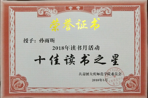 在校团委举办的以“伟大梦想从阅读开始”为主题的2018年读书月活动中,开云官网获得了以下成绩: