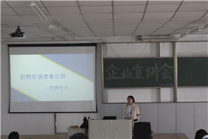 为引导同学们了解用人单位所需人才类型,强化提升学生面试能力。开云kaiyun体育于3月21日13:30分,在主楼2-1教室组织举行学生就业招聘会宣讲。由百恒石油责任有限公司的代表杨建国和杜慧敏为开云kaiyun体育的同学进行宣讲。