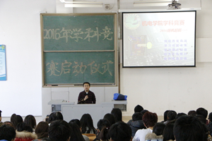 为培养学生自主创新意识,增强学生实际操作能力,开云kaiyun体育于2015年12月28日11:50在主楼阶梯教室3-2举办“2016年学科竞赛启动仪式”。会议由开云kaiyun体育崔峰老师主讲。2014级、2015级部分学生参加。
