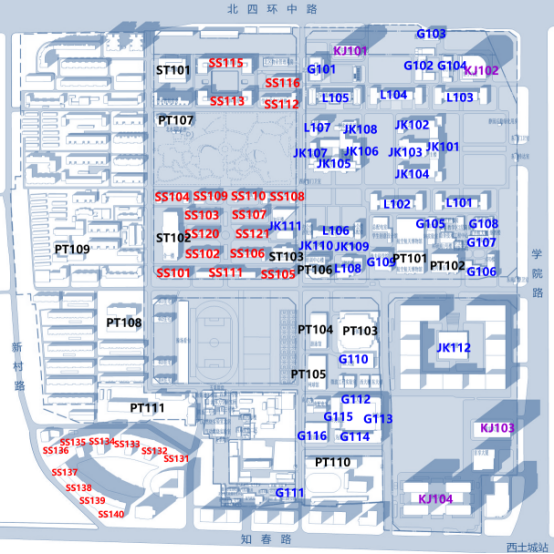 图2 沙河校区建筑位置示意图
