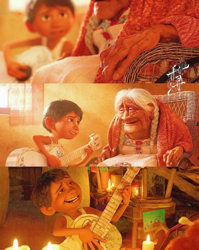 死亡往往被笼罩着伤感的情思,本片却以一种新颖的形式温柔对待往生者,冥灵之境充斥着饱满的音乐狂欢,直面死亡的豁达勇敢,对珍爱之人的情感联络是生者镌刻在心头记忆的守护者,米格为祖母弹唱着熟悉的歌谣,梦想永远不会与爱为敌。