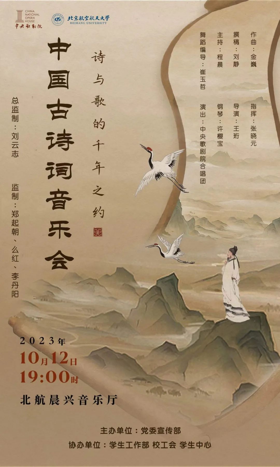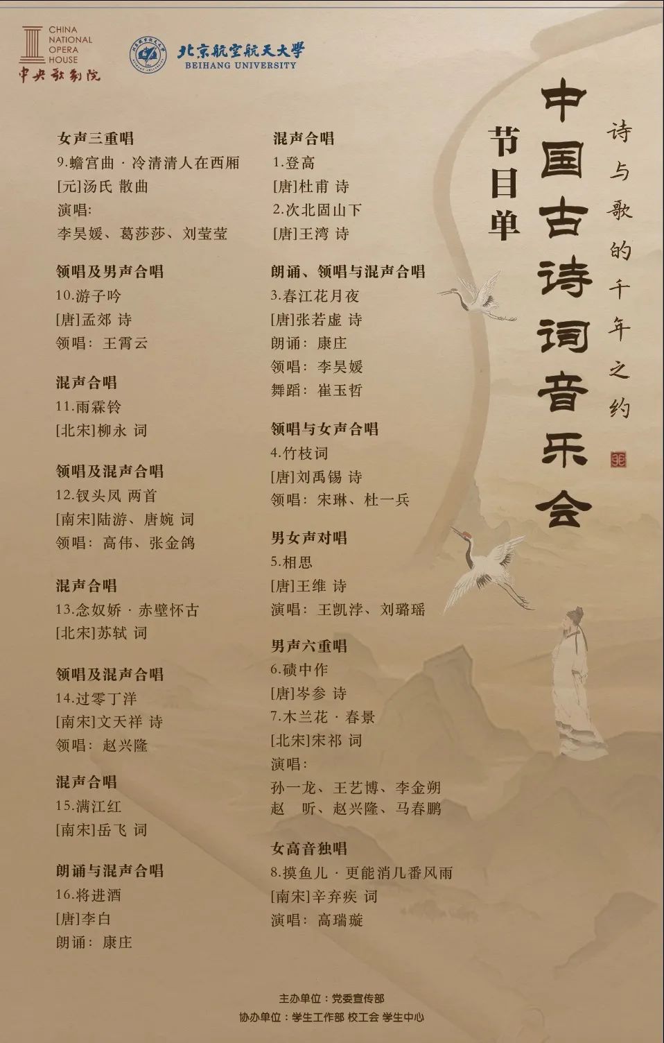 10月12日(周四)下午7:00于学院路校区晨兴音乐厅,中央歌剧院将为大家倾情表演《中国古诗词音乐会》。
