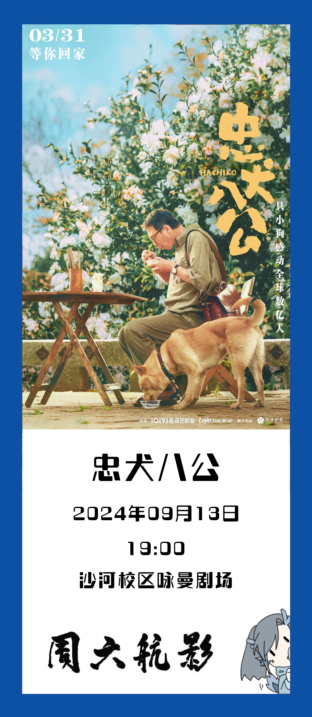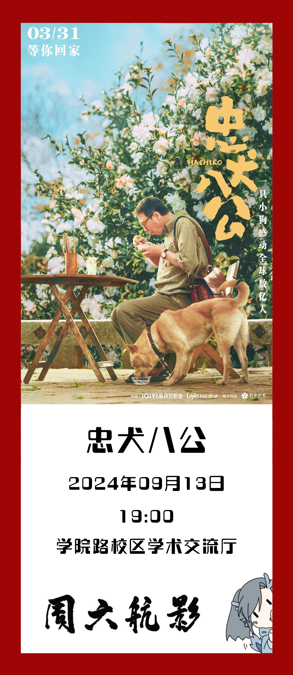 「周六航影」第二周,让我们一起走进《忠犬八公》。看一树花开,热烈璀璨,小狗披星戴月降临于他的生命。当阴霾被驱散时,留存于脑海的,是一眼选择时,对方瞳孔中蕴含的浩瀚繁星。