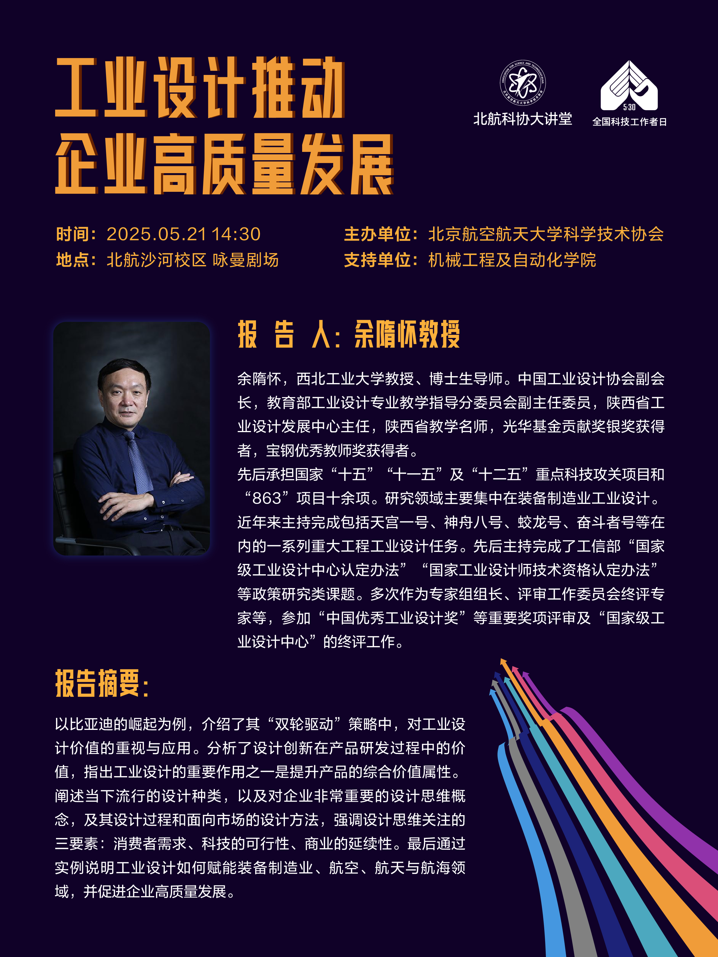 以比亚迪的崛起为例,介绍了其“双轮驱动”策略中,对工业设计价值的重视与应用。分析了设计创新在产品研发过程中的价值,指出工业设计的重要作用之一是提升产品的综合价值属性。阐述当下流行的设计种类,以及对企业非常重要的设计思维概念,及其设计过程和面向市场的设计方法,强调设计思维关注的三要素:消费者需求、科技的可行性、商业的延续性。最后通过实例说明工业设计如何赋能装备制造业、航空、航天与航海领域,并促进企业高质量发展。