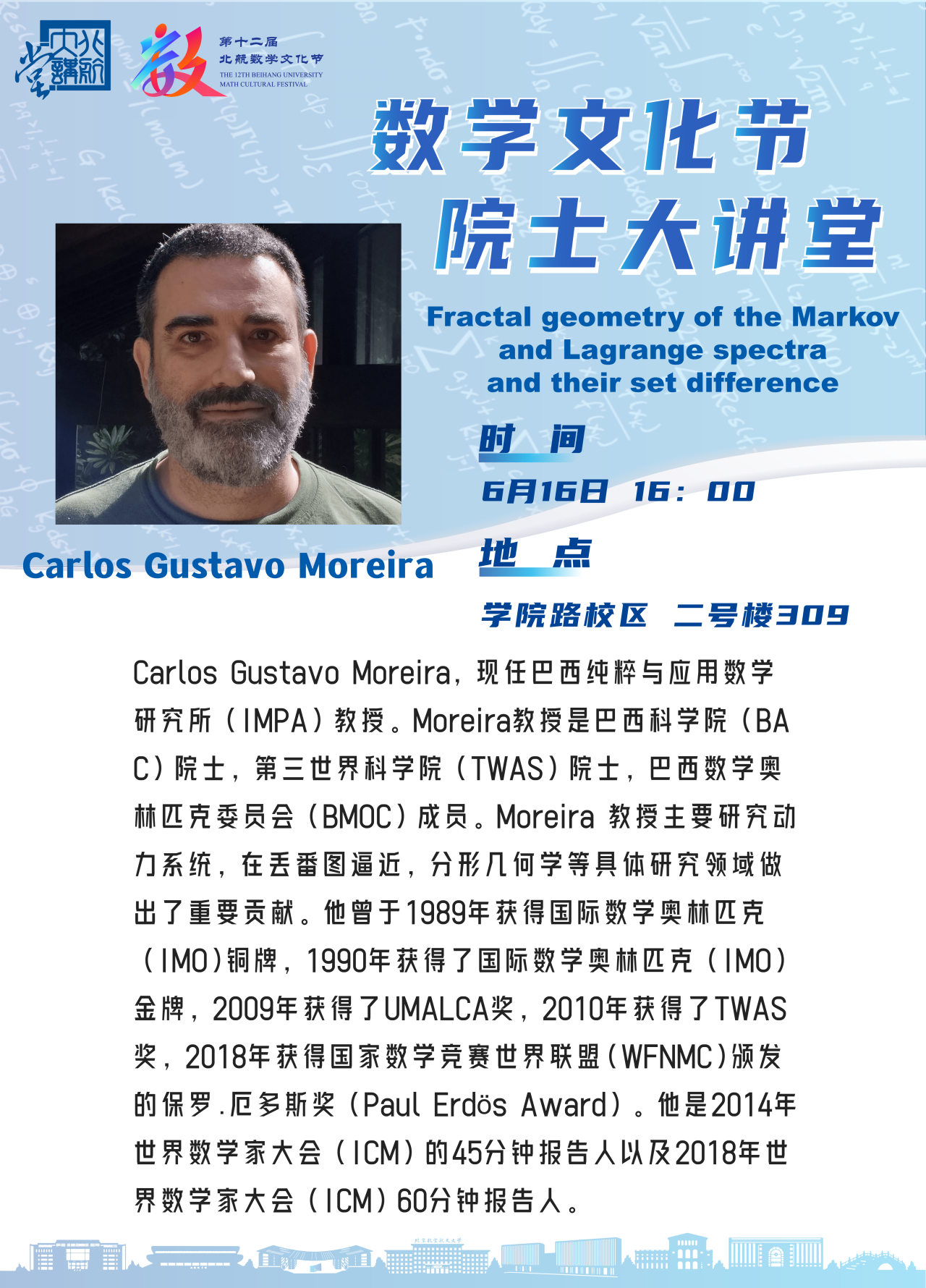 【北航大讲堂】巴西科学院院士Carlos Gustavo Moreira:Fractal geometry of the Markov and Lagrange spectra and their set difference