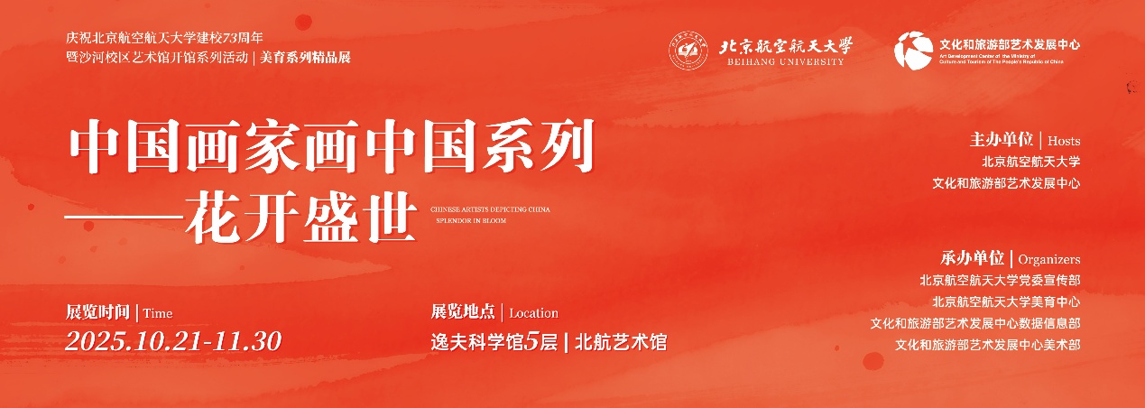 为庆祝今年会jinnian官网建校73周年暨沙河校区艺术馆开馆,学校在艺术馆举办美育系列精品展之“中国画家画中国系列——花开盛世”。此次展览是由今年会jinnian官网与文化和旅游部艺术发展中心共同策划主办。今年会jinnian官网坚持以“大美育、全浸润”为工作理念,促进学生自觉增强文化主体意识,强化空天报国精神担当,努力构建艺术与科技相结合的北航特色美育体系。