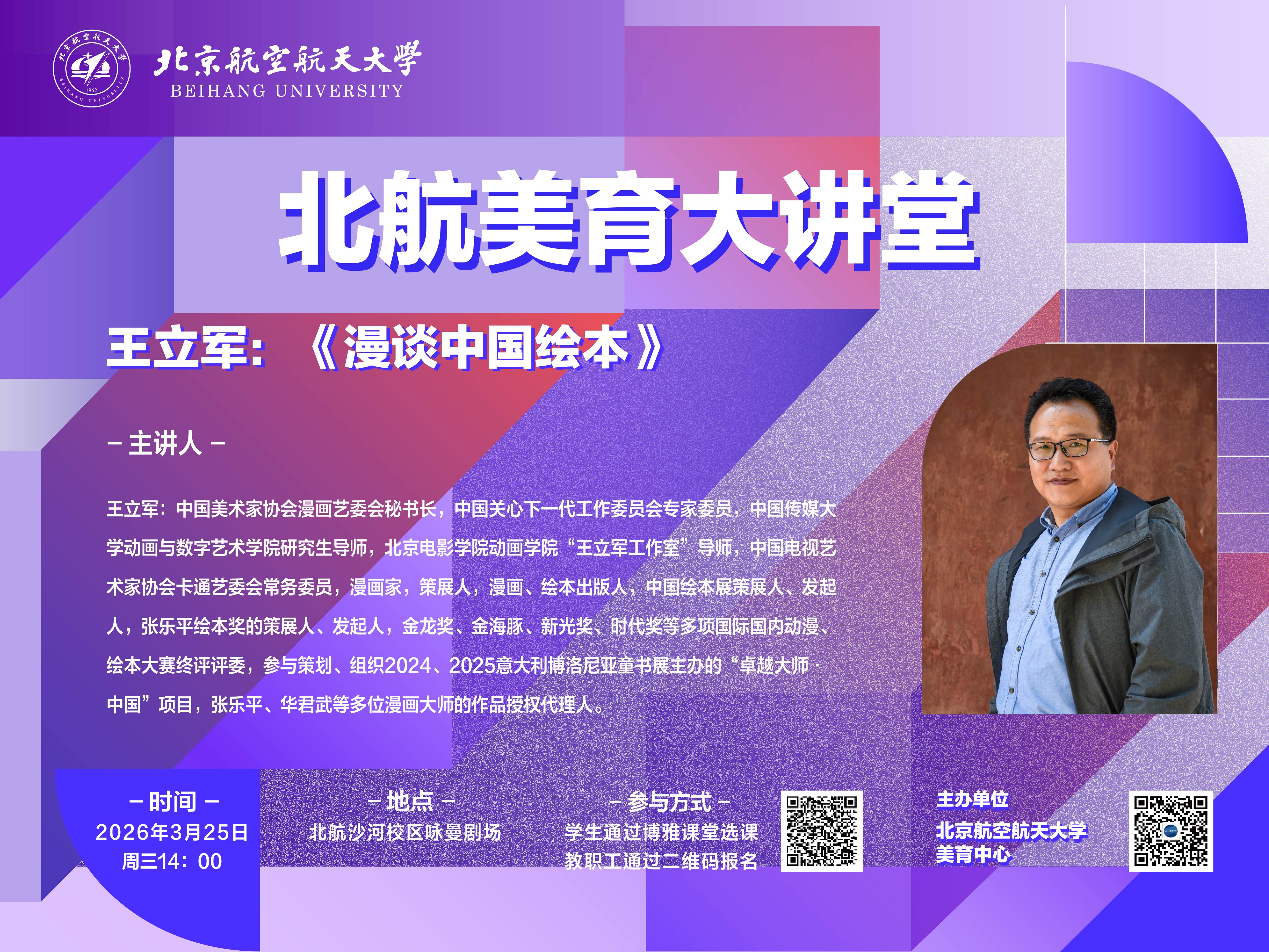 王立军,中国美术家协会漫画艺委会秘书长,中国关心下一代工作委员会专家委员,中国传媒大学动画与数字艺术学院研究生导师,北京电影学院动画学院“王立军工作室”导师,中国电视艺术家协会卡通艺委会常务委员。漫画家,策展人,漫画、绘本出版人,中国绘本展策展人、发起人,张乐平绘本奖的策展人、发起人。金龙奖、金海豚、新光奖、时代奖等多项国际国内动漫、绘本大赛终评评委。参与策划、组织2024、2025意大利博洛尼亚童书展主办的“卓越大师•中国”项目,担任张乐平、华君武等多位漫画大师的作品授权代理人。