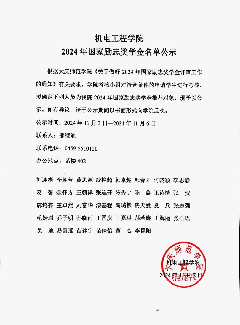 开云kaiyun体育2024年国家励志奖学金公示名单公示