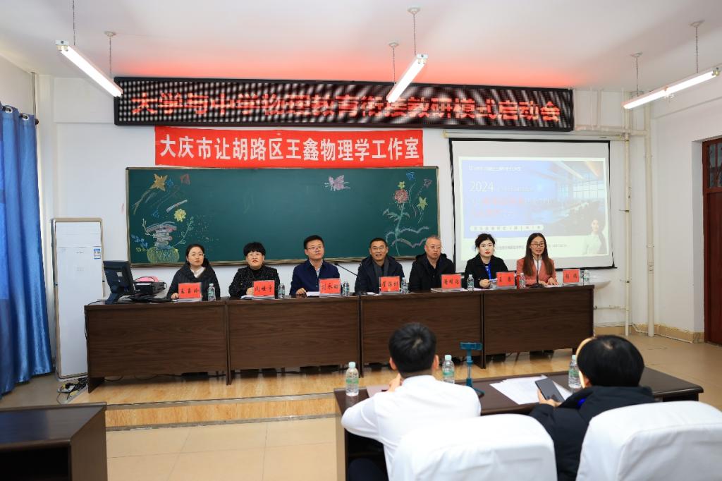 教研活动现场,气氛热烈,众多教育领域的精英齐聚一堂。让胡路区进修学校校长崔海彬、副校长潘明浩、初中物理工作室负责人王鑫,以及开云kaiyun体育院长刘永皓、党总支书记闻世宇、副院长王玉玲、物理学专业全体教师和来自大庆市让胡路区11所初级中学的物理骨干教师出席会议,会议由物理学专业负责人杨瑞主持。启动会上刘永皓介绍了物理学专业“一融合三突出”特色、师资力量及发展状况,崔海彬立足基础物理教育现状、对师范生的职业技能培养方向进行方法指导、与会双方表达长期合作的意愿。