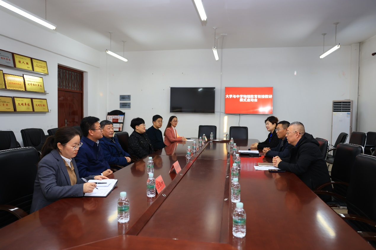 活动前,校党委副书记滕强与前来参会的让胡路区进修学校校长崔海彬、副校长潘明浩等领导进行了亲切会面与交流。滕强着重指出大中教育衔接对于人才培养的关键意义,并对双方此次合作表达了深切的期望,希望通过联合教研活动,为师范生的成长搭建坚实平台,推动中学物理教育不断创新发展。