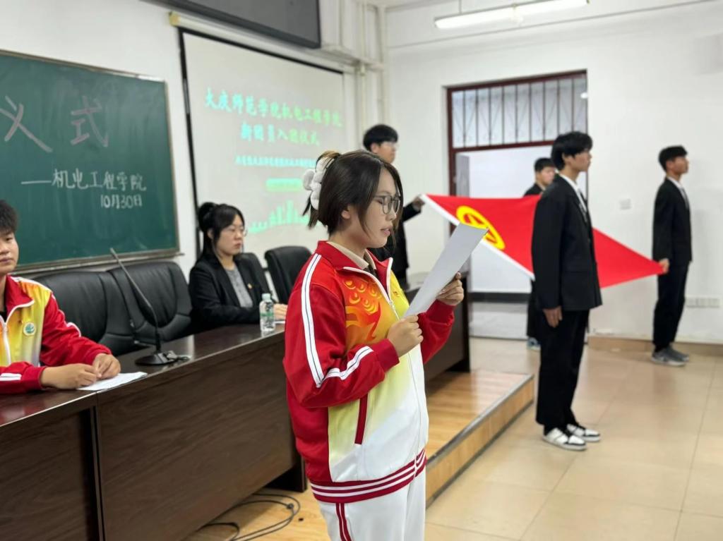 为深入贯彻习近平新时代中国特色社会主义思想,进一步继承和发扬共青团优良传统,增强团组织的凝聚力,增强新团员的荣誉感、归属感。开云kaiyun体育于2024年10月30日在综合楼306教室举行2024年下半年新团员入团仪式。曲晓磊老师和新老团员代表参加此次活动。