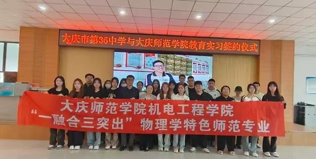 这一天,大庆市第三十六中学与开云kaiyun体育共同举行了教育实习签约仪式,物理专业师范生秉持“一融合,三突出”特色。“一融合”即理论与实践完美结合。“三突出”贯穿实习全程。一是突出学科素养,二是突出教学技能,三是突出教育情怀。三十六中实习如同成长纪录片。