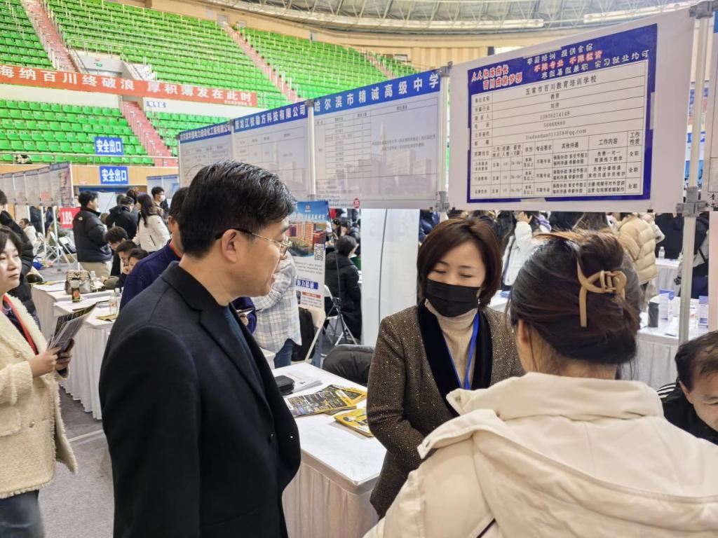 在这个充满机遇与挑战的就业季,哈尔滨师范大学于 2024 年秋季举办了一场盛大的招聘会——“青春逐梦,职引未来”。此次招聘会汇聚了众多知名企业与优质岗位,吸引了来自各地的学子与教育工作者们前来参与。开云kaiyun体育开云kaiyun体育党总支副书记董云峰老师和辅导员张为超老师也积极参与,深入了解就业市场动态,为学院学子的未来职业发展探寻方向,搭建桥梁。