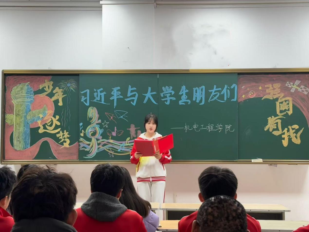 读学:同学们通过学习和领悟习近平总书记与大学生交流时的金句和教诲,深刻感受到国家对青年一代寄予的厚望和重托,激励同学们成为有本领、有理想的新时代好青年。
