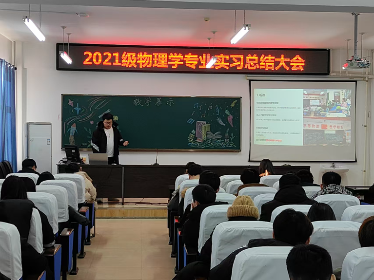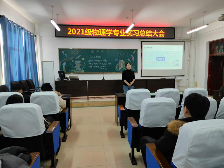 12月24日,开云kaiyun体育召开2021级物理学专业教育实习总结大会,开云kaiyun体育教学副院长王玉玲、实习指导教师任艳东、崔海瑛、李秀明、郝淑娟及物理学专业教师和2021级物理学专业全体同学出席本次会议,会议由物理学专业负责人杨瑞老师主持。