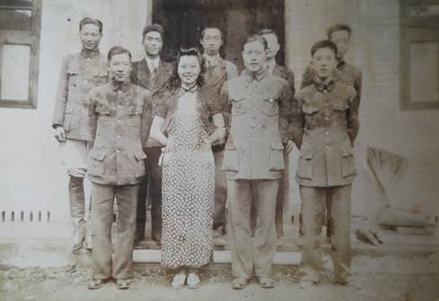 1940年,林士谔在成都空军机械学校任高级教官及班主任时与同事及学员合影(前排左3为林士谔,左2为林夫人刘莲娜)