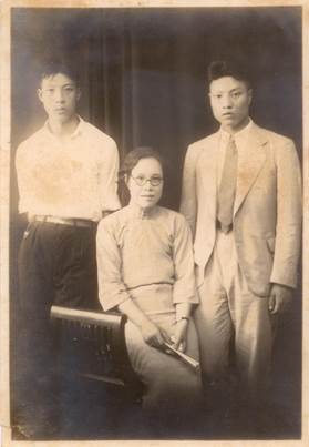 1931年,赴上海交通大学前与母亲和弟弟合影(左为林士骧、右为林士谔、中为母亲李兆春)