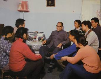 林士谔教授在家中与学生讨论问题